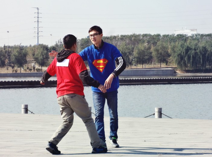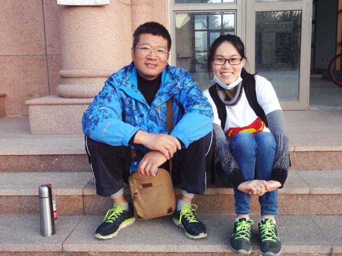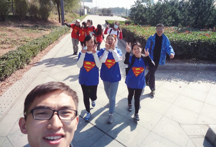 “撕名牌大戰(zhàn)”游戲結束后,在“挑戰(zhàn)、團結、自律、堅持”拉練主題推動下,紅藍兩隊由各自選出的隊長帶領,以章丘繡源河風景區(qū)為起點,向終點高新區(qū)舜泰廣場行進,全程約30公里。