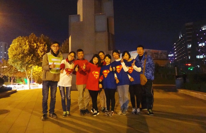 20km30km途中,有些成員的腳上磨出了水泡,在團隊成員的鼓勵與支持下,進行簡單處理,憑借堅持與意志力,努力前行。21:30,歷時9個半小時,兩隊終于全部到達終點——高新區(qū)舜泰廣場,完成了30km徒步拉練,無一人掉隊。