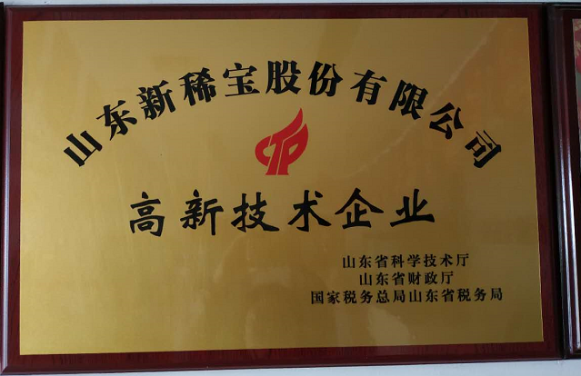 2018年,山東新稀寶股份有限公司被山東省科學(xué)技術(shù)廳、山東省財(cái)政廳、國家稅務(wù)總局山東省稅務(wù)局評(píng)為“高新技術(shù)企業(yè)”