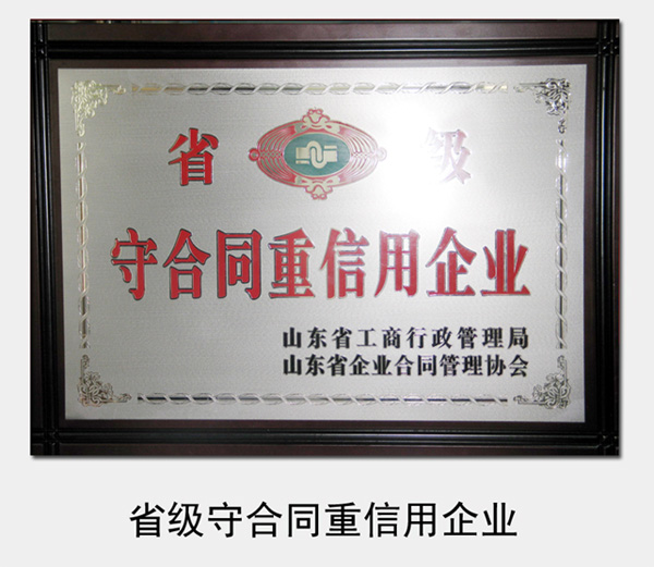 2005年至今,連續(xù)被山東省工商局認(rèn)定為省級“守合同重信用企業(yè)”