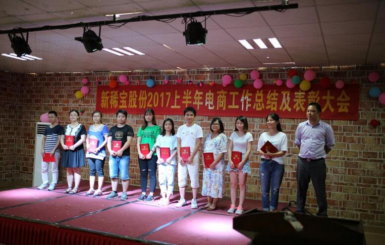 緊張激烈的競(jìng)技賽之后,新稀寶股 份2017上半年電商、商網(wǎng)工作總結(jié)及表彰大會(huì)17:30開(kāi)幕。會(huì)議剛開(kāi)始,陳文歡經(jīng)理做了簡(jiǎn)單的人事任免宣布,隨著公司不斷發(fā)展壯大,機(jī)構(gòu)調(diào)整也越來(lái)越 合理,人才的選拔,布局的完善,預(yù)示著企業(yè)的發(fā)展將愈來(lái)愈好、愈來(lái)愈快。緊接著是張秋峰經(jīng)理發(fā)表講話(huà),從辦公地點(diǎn)的愈加緊湊、商網(wǎng)質(zhì)的飛躍,電商的持續(xù)發(fā) 展說(shuō)起,感慨南寧分公司的發(fā)展之迅速。不但健康行業(yè)發(fā)展快速,孕嬰事業(yè)部也在快速增長(zhǎng)中,外部競(jìng)爭(zhēng)激烈,內(nèi)部競(jìng)爭(zhēng)亦不容忽視。電商、商網(wǎng)下半年需心往一處 想,勁往一處使,爭(zhēng)取早日實(shí)現(xiàn)跨越式的增長(zhǎng)。