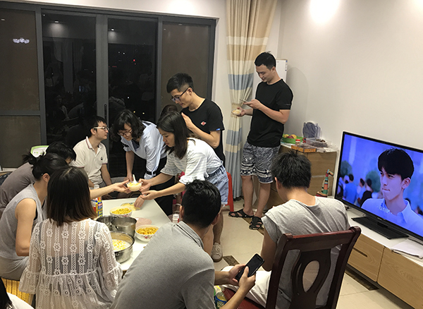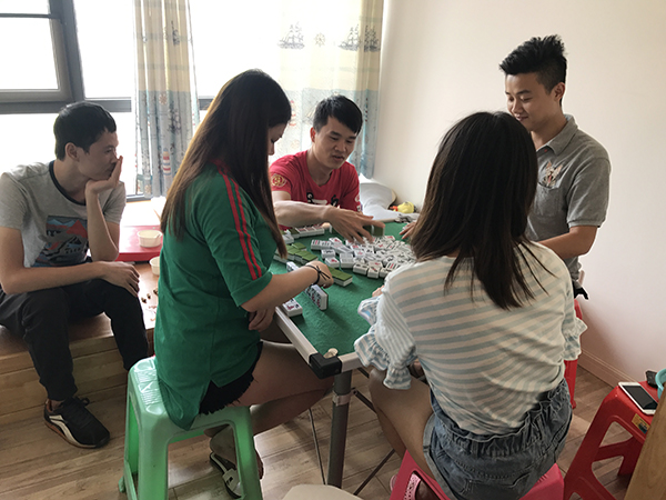相較于廚房?jī)?nèi)的熱火朝天,客廳里卻是另一番景象。大家就像是在自己家里一樣,放松地坐在沙發(fā)上聊天、看電視、吃水果,還有的同事湊成桌打麻將,偶爾聽廚房 里大廚們的“差遣”打打下手。相比于工作時(shí)間內(nèi)的合作,這個(gè)時(shí)候的大家更像是一家人,相處更放松、更愜意。多了工作以外的接觸和了解,相信大家以后在工作 中溝通更加順利、合作更加親密無(wú)間。