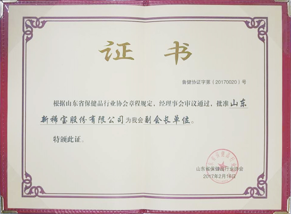 2017年,成為山東省保健品行業(yè)協(xié)會副會長單位