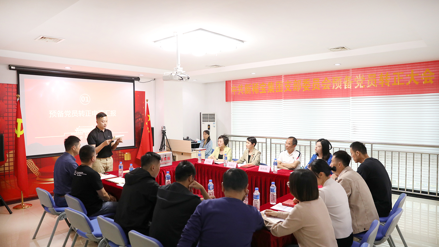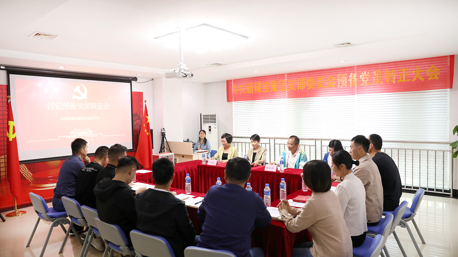 為進(jìn)一步增強(qiáng)黨的隊(duì)伍建設(shè),及時(shí)為黨組織注入新鮮血液,增強(qiáng)基層黨組織的凝聚力、戰(zhàn)斗力、影響力,根據(jù)《中國共產(chǎn)黨發(fā)展黨員工作細(xì)則》等相關(guān)規(guī)定,在經(jīng)歷一年培養(yǎng)考察、征求黨內(nèi)外群眾意見、材料審查和公示轉(zhuǎn)正信息等環(huán)節(jié)后, 2023年10月9日下午,新稀寶黨支部組織召開支部黨員大會(huì),討論預(yù)備黨員陶青松、楊延躍、李志國同志的轉(zhuǎn)正問題。大會(huì)特別邀請(qǐng)了濟(jì)南高新區(qū)齊魯軟件園黨委奧盛片區(qū)黨建指導(dǎo)員徐慶海書記、黨建專員張麗同志,集團(tuán)總經(jīng)理、支部組織委員于鳳仙同志和全體黨員參加了會(huì)議,會(huì)議由支部書記鄭朝霞同志主持。