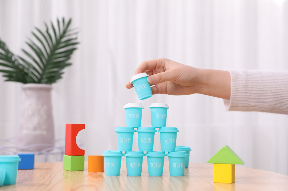 首創(chuàng)小藍罐益生菌包裝,食用后的小罐可以用來搭積木,種綠植,玩魔術(shù)等小游戲。